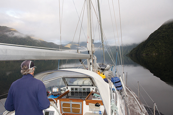 Fifteen fiords, mistakenly named sounds, make up the vast Fiordland National Park located in the southwest corner of South Island. Those in the north are narrow and steep-sided, with dramatic peaks rising out of the water to lofty heights. Those further south are lower, with wide-open mouths. There are bays in some, islands in others. Several have long, narrow arms branching out. As far as the eye can see, a blanket of dense forest covers the mountainous land. Harsh weather, more than 22 feet of rain each year, and tiny but vicious sandflies have kept human habitation at bay. We spent a month in this remote, magical area exploring Milford, George, Thompson, Bradshaw, Doubtful, Breaksea and Dusky Sounds. None are more than a day sail apart. We chose those fiords with safe, all-weather anchorages. Yes, the word fiord is spelled with an “I” here.