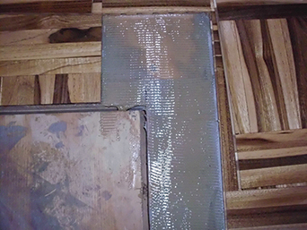 The next question was how to pattern the parquet panels. Each panel was about 24 inches long and six inches wide with the individual pieces held together with stainless steel wire running in narrow slots on the back side. The small strips of wood lay in seven by seven inch alternating patterns. It turns out there are three common patterns used for placing such panels: 1) parallel: align the lines across all panels, creating long continuous strips in each direction, 2) mosaic: offsetting the panels such that each square is adjacent to another with lines running perpendicular, or 3) scale: staggering the offset of the panels. After laying out panels in each of these manners, we settled on the mosaic approach.