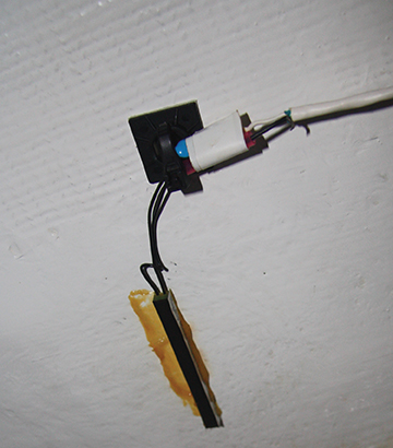 We use strain sensors mounted below the decks as intrusion sensors. These are small strain gauges that are epoxied under the decks in the areas to be protected. Since they live inside the vessel below decks, they are not exposed to the external weather elements. These sensors work well on solid or cored fiberglass decks—even very thick and stiff layups. They can also be used on metal plate decking and cross beams. One sensor per area is usually all that is needed to protect a zone on a typical cruising boat. We use one sensor in each of our protection areas, for a total of three sensors.