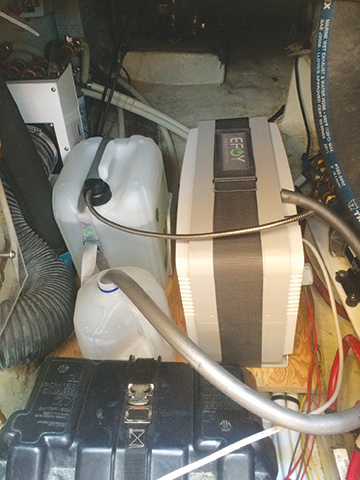I watched the Hydromax work aboard the Jeanneau and except for a slight hissing noise upon startup, it was virtually silent and gave off very little heat. During the startup phase the unit produced a 14 amp charge and then leveled off at 12.5 amps during the bulk charging phase. Other than running the engine to get from one anchorage to another, the owners had no other alternative sources of power aboard and reported that the Hydromax more than took care of their energy needs while cruising. They also said that if they were out cruising full-time, they’d probably add solar to reduce the amount of time they needed to run the unit.