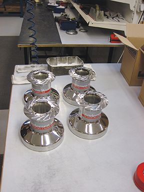 Watching winches go together was a first for me. Andersen winches have stainless steel drums that have vertical ribs to provide grip on the line that is around it, but are slippery enough to allow the line to be eased without chafe. The drums themselves are formed in a huge press while the winches’ internal parts are machined to incredibly precise tolerances.