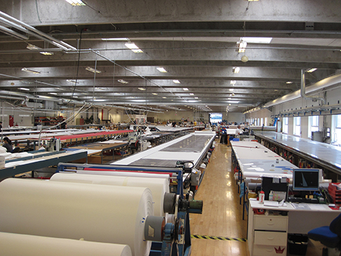 The loft is laid out with enormous tables so the sail makers do not have to spend their days on their knees or sitting down in recessed sewing stations. The shop where the laminated or Epex sails are built has a giant vacuum table with the string-laying gantries and heat lamps suspended over it. This workspace looks like a “clean room” where satellites are built and has a highly efficient air filtering system to keep dust from getting into the laminates as the sails are built.