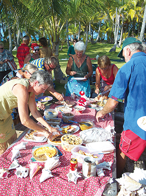 This is, like weather, something you can’t predict. But after five years aboard, we are both healthier than when we left. The temptations of fast food are gone. A boat, by its nature, keeps you moving. We may dinghy to shore, but once ashore we walk just about everywhere. We swim and snorkel a lot. We are more active, eating healthier and as a result, are happier. The other good news is that many countries have very good health care when it is available. We’ve had our teeth cleaned in Colombia, Panama and Fiji. Routine prescriptions have been filled easily and there are lots of cruisers out here in the medical profession to give advice. We have a nicely stocked first aid kit and have been lucky to have to give away more to small island clinics than use it.