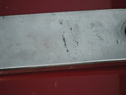 Once the chainplates have been removed it is time to clean them up for inspection. Carefully remove all sealant that may be stuck to them. Solvent may help with this as well as some light scraping. Then use a medium Scotch Brite pad to polish any rust or stains from the surface. After cleaning, visually inspect them for any pitting or cracks. If you see lines that you are not sure about, using a dye penetrate will aid in determining if it is a surface defect or crack. Check for surface pitting as well. Small pits will easily develop into deeper pits that will weaken the metal. If there is any doubt about the integrity of a chainplate, replacement is always the safest option.