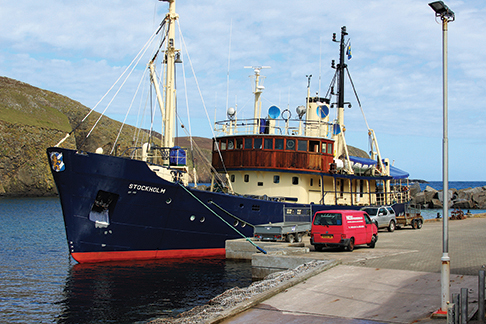 Our fast passage meant that we had the rugged outline of Fair Isle on the horizon not long after sunrise Friday morning and by 9:30 a.m. we’d dropped sail, entered North Haven harbor and prepared to moor alongside the pier wall.