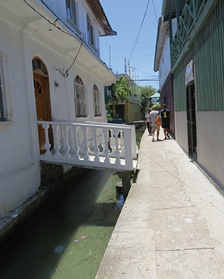 As usual he also checked out the places to get a first beer, and that is when Red (real name, Trinidad) found Bram. Red Saunders is a native of Guanaja but had the last name of Saunders because his grandfather was one of those who came from afar (New York), fell in love with paradise and stayed. Red was to be our tour guide (one of his many small jobs that “fill the basket”) for the low island where the majority of the approximately 10,000 Guanajas live. Houses were so close together that the threat of fire brings everyone out to fight and defend homes. We wandered the narrow alleys with Red telling us stories.
