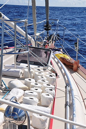 They say an army travels on its stomach, which is no less true for the little navy you’ll be sailing with. Try to keep meals simple, but nourishing and tasty. While I generally schedule each watch to prepare a meal, when possible I’ll schedule the folks with the most skill and interest in cooking for dinner. In nasty weather, soups and prepared stews are warming and welcoming. In the middle of the night, those on watch will find snacks and some warm drinks like tea or hot chocolate bracing. And in prepping for an offshore trip, plan meals for a trip 50 percent longer than you anticipate. That last 50 percent can be canned goods, dehydrated foods, and other things that will not spoil and be good for the next long offshore passage. Some trips just take longer and running out of food can’t be an option.