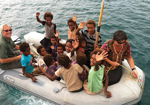 Active volcanoes, dense forests, pristine bays, rugged mountains, cyclones, earthquakes, ash plains, bamboo huts, chiefs, pigs, kava, cannibalism, cargo cults and malaria. It feels as though we’ve sailed back in time to arrive when the Earth was young and volatile with indigenous tribes living in small villages tucked deep in the bush.