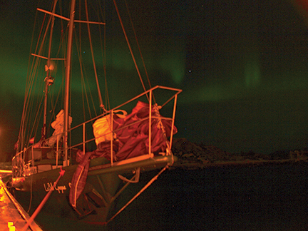 During the summer, we sailed along the Norwegian coast up to the Russian border. The trip was demanding; characterized by changing weather conditions, tides and strong currents, wind effects on the coast and in fjords, and sudden fog. But then came autumn and winter and the real adventure began. One low pressure system after another marched up the coast while the sun moved farther south to leave us in the blue twilight of the polar night and soon enough, in darkness. What an experience—night sailing nearly all day long! But we were lucky. The approach of winter was gentle and temperatures dropped slowly. However, we had been running our diesel stove for a month already to keep our floating home dry and warm.