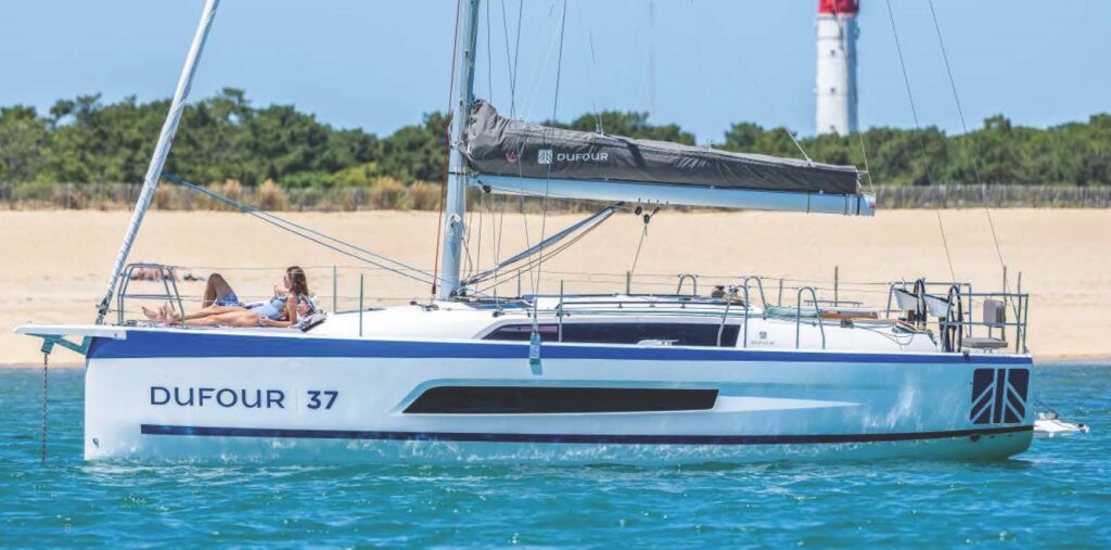 The Dufour 37 is a great new concept boat designed for performance cruisers. The hull has a broad stern and full run aft for power and sped while the bow sections are full for interior volume and pleasant sea keeping. This new hull form allows for a greater power/weight ratio and the ability to carry a larger than usual sail plan. The cockpit is commodious and well set up for both cruising and racing. Down below, the interior offers a fine forward cabin, a roomy saloon and practical galley and either a single or twin aft quarter cabins. This is a sexy new look for Dufour and a thoroughly modern reimagining of the racer-cruiser concept. Read more.