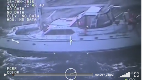 According to a USCG report a Coast Guard aircrew hoisted two mariners from a 52-foot Canadian-flagged sailing vessel 5-miles west of Grays Harbor, Washington on January 16.