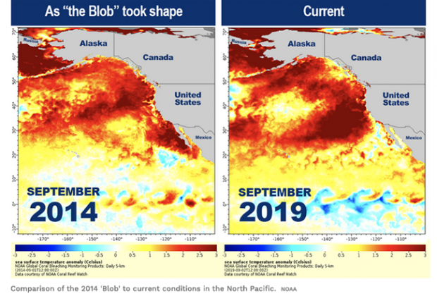 (Forbes) – A bundle of warm water has formed, stretching from Alaska to Mexico causing scientists to become concerned. These heat waves can cause massive die-offs of seabirds and salmon, at the same time as prompting the rise in population of squid, mackerel and rockfish. Weather patterns play a role in the trajectory of this heat wave. Read More