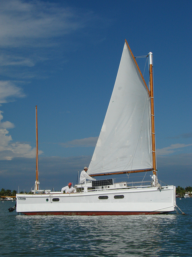 Lately though, our adventure has changed. As our boys grow up there are weddings to attend, graduations to celebrate and a new grandson to spoil. While we’re not done crossing big water, for a year or so we are exchanging our blue water cruising lives for brown-water, Intracoastal Waterway (ICW) trekking, keeping us closer to home and our family. And, to accommodate our change in exploration techniques, we temporarily traded our deep-draft battleship for a plywood box: a Phil Bolger AS-29.