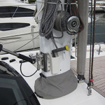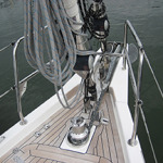 The boat has an advanced hydraulic system for running the headsails and mainsail furlers. These are operated with push buttons at the helms in the cockpit, with most of the controls placed on the starboard binnacle. This is a useful setup that allows one person to manage the sails from the cockpit. While the vang and furlers are fitted with remotely controlled hydraulics, the backstay has a manual hydraulic system that will prevent you from overpowering the rig and doing damage.