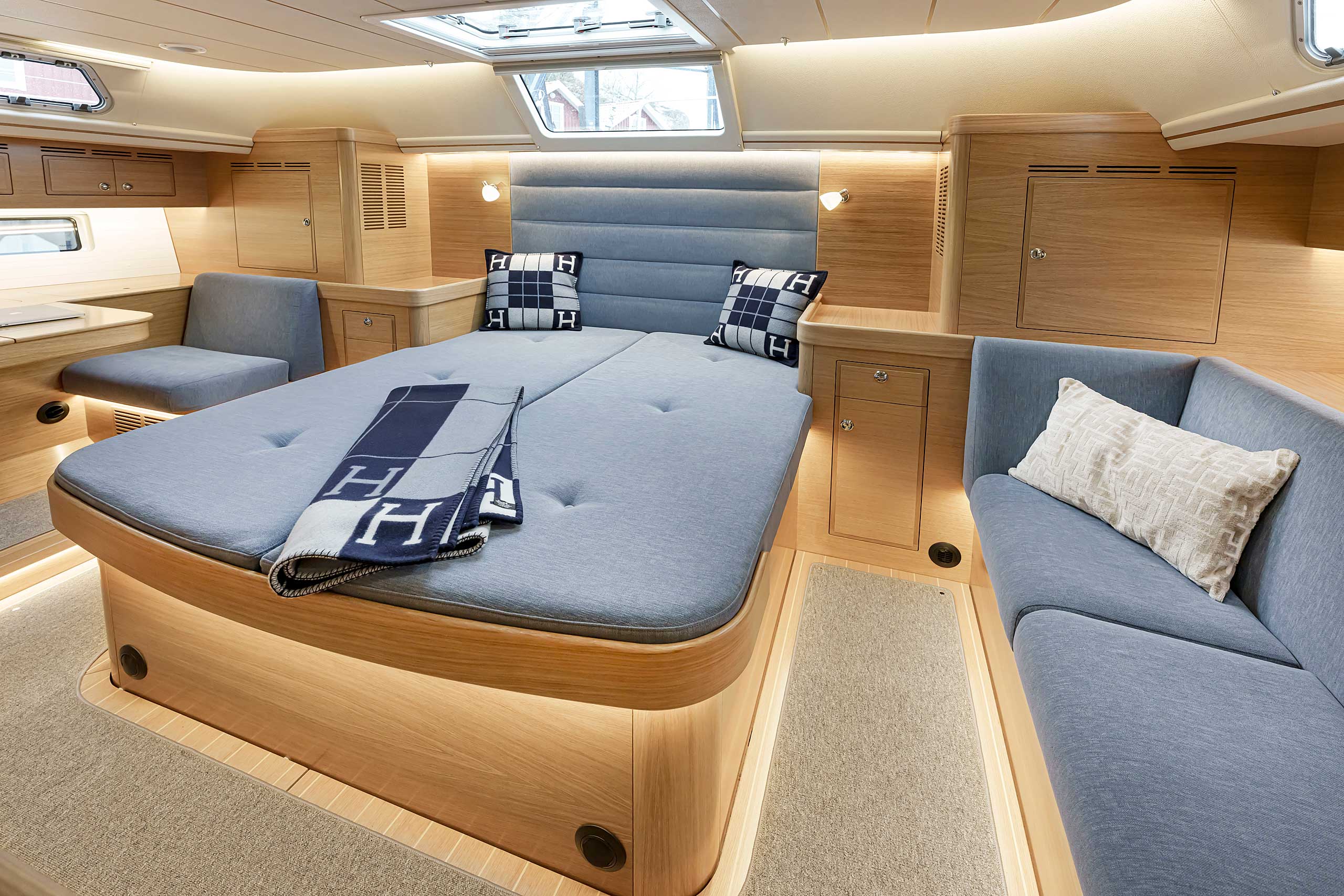 The 69 is a family cruising boat and has been set up with all of the modern sail handling gear for true push-button sailing and docking. With in-mast mainsail furling and a high aspect 110-percent roller furling jib, the sail plan will be efficient and very easy to handle in a wide range of sailing conditions. A roller furling Code 0 on the bowsprit will add horsepower in light conditions or when broad reaching. All sails can be handled from the cockpit.