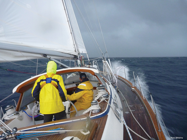 When racing long distances with a full crew, I usually prefer a two-watch system that stands four-hour watches at night and 6 hour watches during the day. Watch changes take place at 0800, 1400, 2000, 0000, and 0400. That system, however, presents a potential problem when dealing with heavy weather situations. The oncoming watch is unfamiliar with how the boat is behaving in the extreme conditions, and they are immediately expected to come on watch from a deep sleep and drive the boat – sometimes on a dark, cloudy night. It can be difficult.