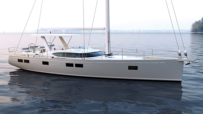 The rig has been designed for easy handling by a lone watchkeeper or a couple who like to manage their own boat. With a double spreader in-mast furling main mast, the big main will be simple to reef and unreef from the cockpit. The Solent-style headsail plan has a fairly low cut 110-percent genoa on the inner fore stay and a higher cut 140-percent reaching sail on the headstay. With its sail plan, you can use the inner genoa for all upwind work and then roll it up and roll out the reaching sail when off the wind. An asymmetrical spinnaker can be tacked down on the tip of the bowsprit.