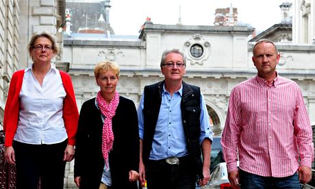 Relatives of the missing yachtsmen – (from left) Cressida Goslin, wife of Paul Goslin, Gloria Hamlet, girlfriend of Steve Warren, Graham Male, father of James and David Bridge, father of Andrew – in the days before the yacht was found. Photograph: Ian West/PA