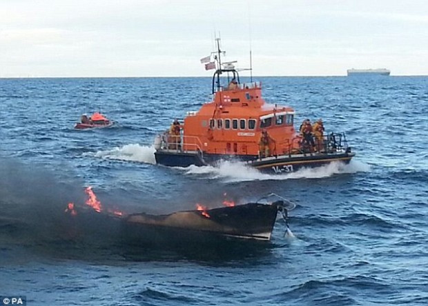 A lone Frenchman lost everything when his boat burst into flames off the North East coast of England. The man was sailing in his 38ft yacht from Iceland to Holland when an explosion on the boat caused a fire.
