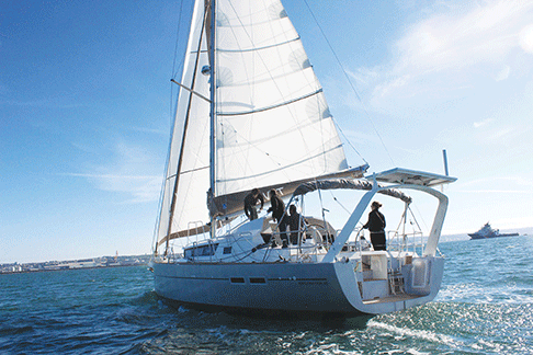 When we cracked off to a reach, the Racoupeau designed hull really came into her own. Working our way northwest on a comfortable beam reach, we were making a cool 7.5 knots and saw the knot meter topple the 8 knot mark on several occasions.