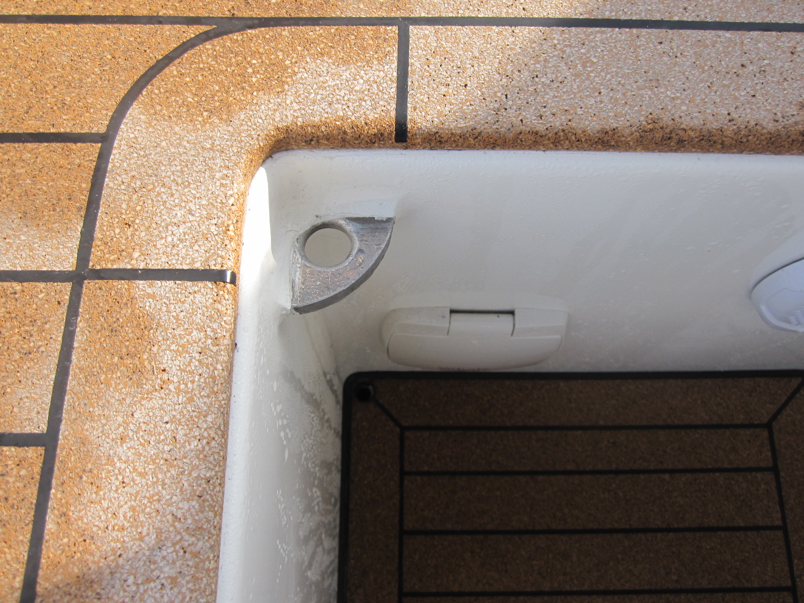 A stout double anchor roller graces the bow and anchor chain can run through an under-deck tube back to the windlass near the mast. This setup puts all the weight of the chain towards the middle of the boat, which allows her to handle better at sea. Forward is a large bow locker for sails, lines, fenders and more.