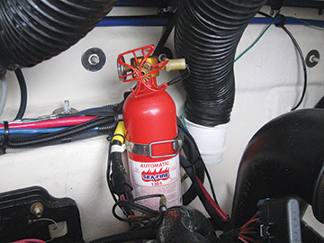 Fire extinguishers need to be checked annually as well. Handheld units should be checked for age and to verify the gauge is still in the green. Any unit more than 8 to10 years old should be replaced as units older than that may not function properly. Make sure all units are properly mounted and in a location easily sighted. When checking dry chemical extinguishers it is a good idea to turn the unit over and gently tap it with a rubber mallet to loosen the powder inside. If you have an automatic system in the engine compartment it should be professionally inspected every three years. If the unit is small it can be removed and taken to an authorized service center for inspection. Do not forget to run a self test on any smoke alarms and CO monitors while you are at it. Replace any alarm batteries at least once a year.
