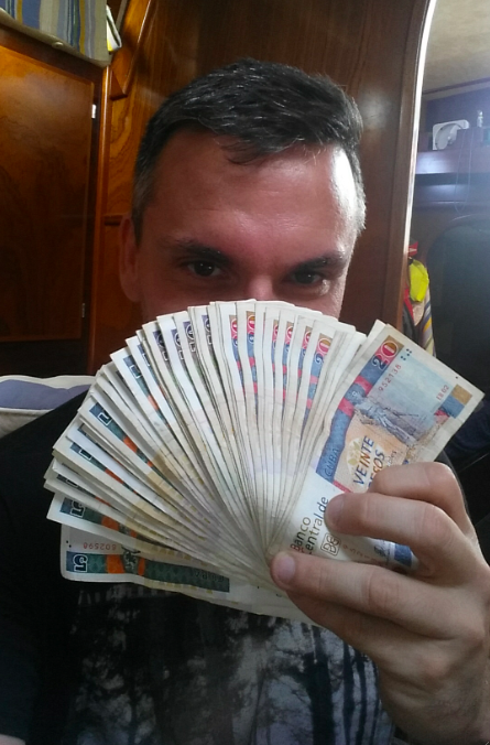 Of Cuba’s many complications, the one foreigners most frequently grapple with is its dual currency system. Once officials okay a preliminary international check-in, the captain heads for the nearest Casa De Cambio (CADECA) for the 55 Convertible Units of Currency (CUC) to complete formalities, plus another 25 for each visa. Dollars are not legal tender, but they can be exchanged at 1:1 before a ten percent penalty is tacked on, making the rate .87 CUC.