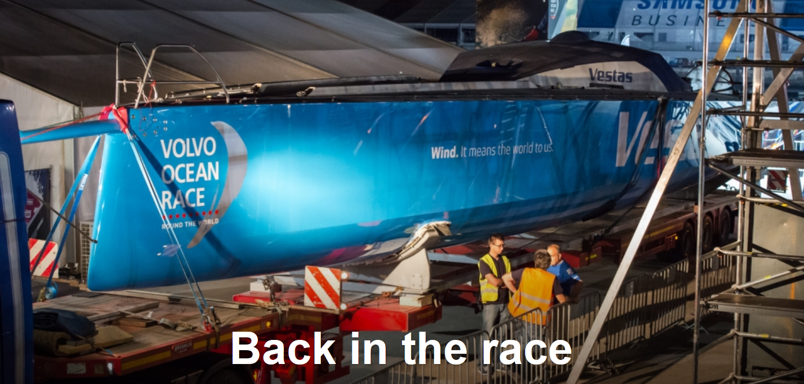The rebuilt boat of Team Vestas Wind arrived safe and sound into Lisbon. It marks the end of an epic six month journey back from the rocks.  Nov 29, 2014: With the seven boats winging their way up through the Indian Ocean towards Abu Dhabi, 10 days into Leg 2, crisis hit – as Team Vestas Wind became grounded on an atoll, some 200 miles from Mauritius.  Read More