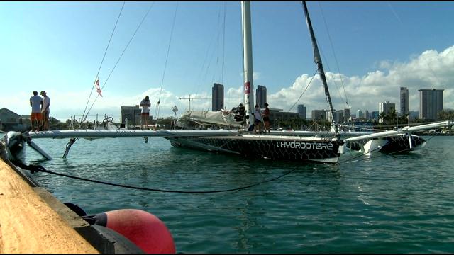 After 10 days, two hours, and 26 minutes, the World’s Fastest Sailing Boat, the Hydroptère, finally arrived at Kewalo Basin from Los Angeles in an attempt to set the record for the fastest sail from Los Angeles to Honolulu.
