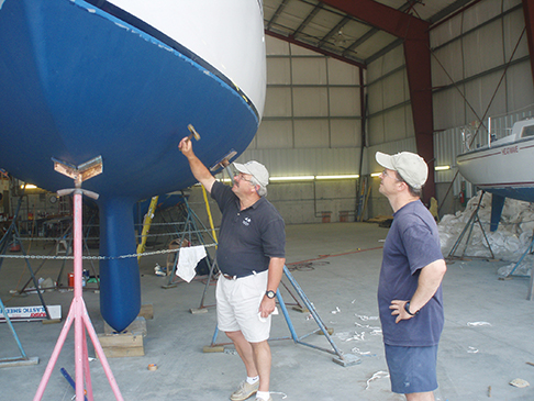 Lesson learned: prepare the vessel in order to permit a thorough examination. Don’t waste the surveyor’s valuable time—and your money! Empty every locker, shelf and cubbyhole. Buy extra-large, inexpensive containers to store surplus equipment and get as much as possible out of the way. This will allow the surveyor to immediately focus on critical systems. Key areas to provide access to are the chain plates, hull-deck joint, and high stress areas around bulkheads and the compression post. It’s equally important to expose the steering system, engine transmission shaft, batteries and central electrical areas.