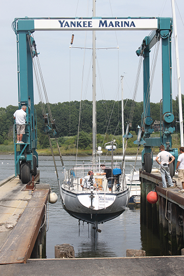 If your surveyor is willing to work on a weekend, you might be able to save money by arranging to have the last haul-out on a Friday. The boat can remain in slings over the weekend and be the first back in on Monday morning, keeping your haul-out bill to a minimum. This only works if the forecast calls for dry, hot weather that will allow the hull to dry quickly for reliable moisture readings.