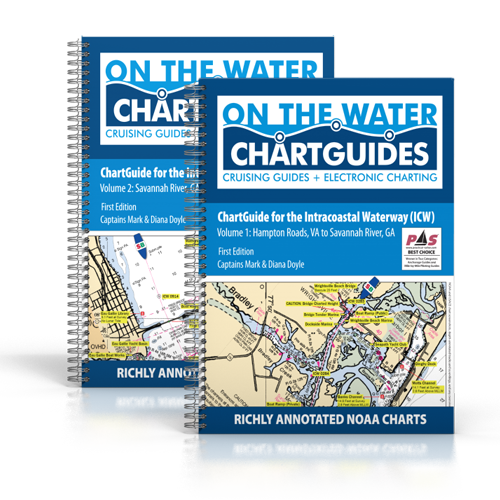 On the Water ChartGuides launches new two-volume “ChartGuide” series including over 3,000 geo-accurate guidance notes and annotations for the Intracoastal Waterway. Captains Mark and Diana Doyle joke they may be the last of the old school cruising guide authors-out there, full-time, collecting firsthand information with an assortment of low- and high-tech survey tools. But that on-the-water commitment pays off in their latest project, as they re-define value in an Intracoastal Waterway chart kit.