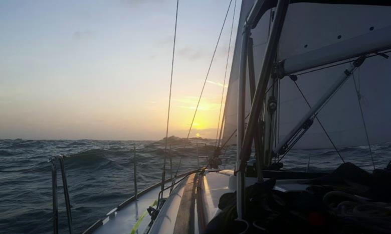 As the sun rose through the clouds, we realized that we only had a few hours left to our destination, if the wind held up. We finished the race in 19 hrs, 22 minutes with max SOG touching 12 knots and averaging 7.7 knots for the 150-mile race. The Jeanneau fleet finished within 30 minutes of each other. It was an amazing un-race. We had a great feeling of accomplishment when we all finished safely.