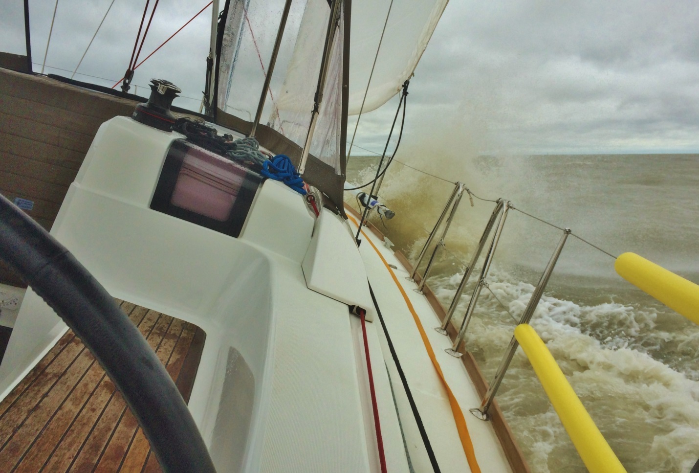 Jack lines, MOB poles and safety equipment were installed. The hull of Rodeless Traveler, my new Jeanneau Sun Odyssey 379, was cleaned and ready for speed. My crew and I were busy stowing gear and going over last minute preparations. Trash talking between the other crews on the dock had begun and excitement levels were almost palpable. Months of preparation had been spent all in anticipation of a great race and high hopes of a trophy at the end. The weather was forecast to be on the sporty side, but we were ready.