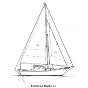Built in Maine, in true Maine style, the new All Weather 23 provides a raised-doghouse cabin on their traditional full keel hull. The cockpit is large and the interior remarkably spacious. With her cutter rig, bowsprit and saucy lines, the All Weather will stand out in any anchorage, while keeping her crew warm and dry.www.eastsail.com