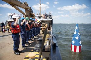 The crew of the Coast Guard Cutter James Rankin, a 175-foot buoy tender homeported in Baltimore, Maryland set the historic Francis Scott Key buoy in the Patapsco River near the Francis Scott Key Bridge. Read More