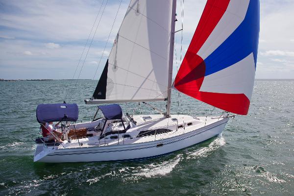 The afternoon we test-sailed the new Catalina 385 on the Chesapeake Bay near Annapolis, the breeze was a pleasant 10 knots out of the northeast and the bay fairly calm. As we motored out of Back Creek, we rolled out the mainsail and then rolled out the red, white and blue screecher. The 385 put her shoulder down and started to really scream as we watched the speedo climb from 5 to 6 and finally 7 knots.
