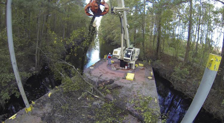 The Norfolk District derrick boat Elizabeth has been working since October to clear debris from the waterway. The canal must be clear for engineers to perform a survey and assess the shoaling.