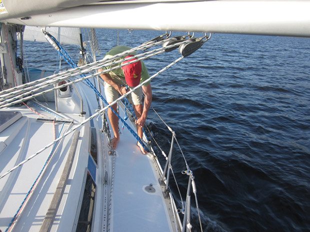 A potential problem with preventers that many sailors point to is in how the boat would react if the main did get backwinded with the preventer in place. The claim is that the boat would heel sharply to leeward, which would then make it difficult to steer. In light to moderate breezes most cruising boats can handle this quite easily—in heavy wind and swells it is important to ease the preventer quickly to help control the boat.