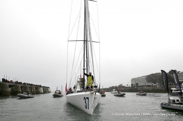 The crowds were out again this afternoon to welcome home 66 year old American Rich Wilson who had just completed his second Vendée Globe. As the oldest skipper among the 29 boats which started the 27,440 miles singlehanded race from Les Sables d’Olonne, France on November 6, Wilson and Great American IV secure 13th place with an elapsed time of 107 days 00 hrs 48 mins 18 secs – an average speed of 10.70 knots. Read More