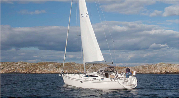The displacement to length ratio of 178 falls in the mid-range of modern production cruisers and indicates that  at 18,960 pounds of displacement, the boat will have a solid motion in a seaway and stand up well in a blow.  Regarding her sailing horsepower, the boat’s sail area to displacement ratio is 15.41, which is again in the mid-range for production cruisers and indicates that the rig will be well rounded for easy, fast sailing in a wide range of conditions. All in all, the design of the 40.3 is sensible for a cruising couple who want good high average cruising speeds without the jerky motion of a lightweight speedster.
