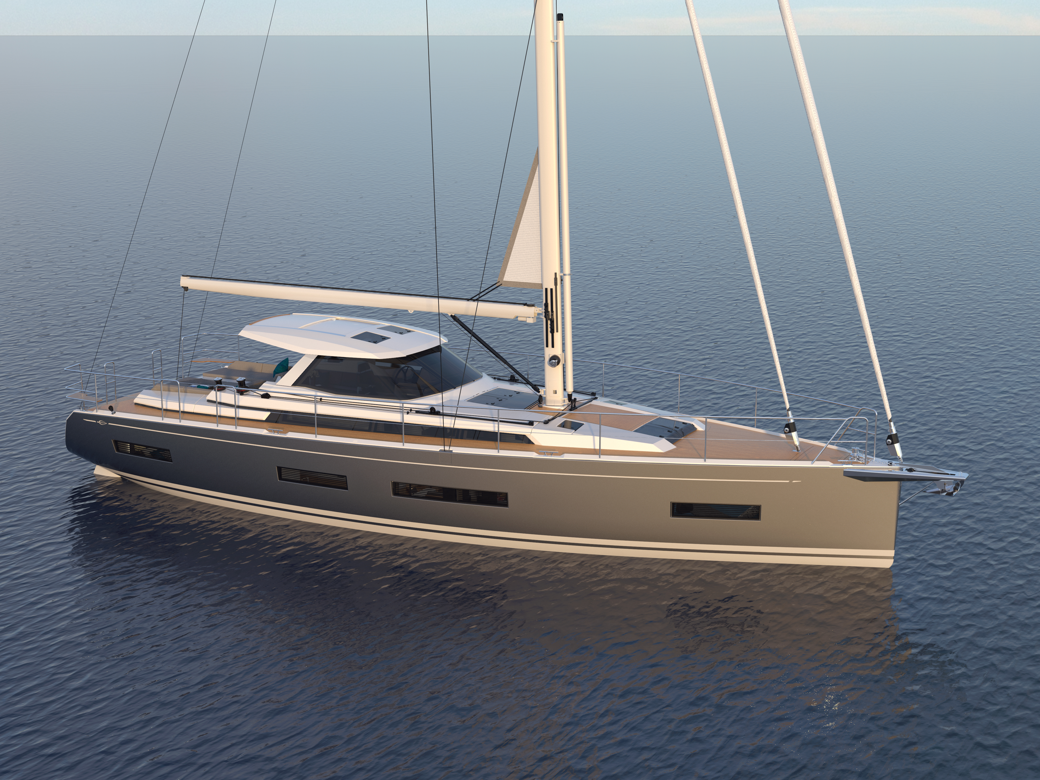 Among the innovations on this new model, the choice of a straight, powerful bow is a break from the shipyard’s habits. The waterline is extended to improve performance, making the front part of the boat more spacious. The addition of a bow sprit makes it possible to move the anchor and the chain away from the stem, as well as tacking an additional sail such as an asymmetric spinnaker or a code-0.