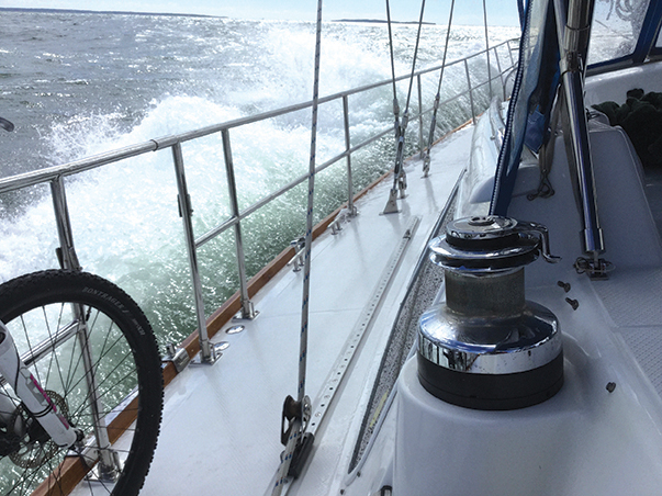 Of the sail inventory you have, select a set of sails that will give the best helm balance in moderate to strong winds. A significant issue when sailing offshore is to keep a good balance on the helm. Significant weather helm, twentyfour-seven, puts large loads on the rudder, steering system and autopilot and can lead to premature failure of those components. You can get by with some weather helm for an afternoon sail, but it can hurt you over a long passage. That oversized genoa may work well in the shifting light airs of coastal cruising, but in steady winds around a front and in the trades, the steering system and boat may have to work too hard. And when leaving sails set without checking their trim over a long passage, you can again be loading up with weather helm.