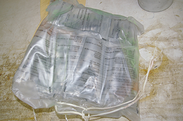 When I finally climbed inside, it was an unnerving feeling to sit and look out from underneath the orange canopy. The doors on a raft either zip from top to bottom or bottom to top. The two doors on our raft zip from the tube up, which would allow for some ventilation or for a view out. We went through all the supplies inside the raft and I was surprised to know that it—and most rafts—actually comes with very little in the way of survival gear. There was enough water for six people for 24 hours, paddles, valve covers, sea anchor, knife, pump, tapered plastic cones to plug a leaky tube, two flashlights and five flares.