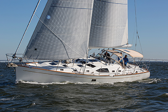 The Passport 545 is a much decorated cruising boat with Cruising World’s Boat of the Year and Sail’s Best Boats awards to its credit. The boat started life as a center cockpit aft cabin design that was an immediate success. It was followed by the 545 aft cockpit design that generated a lot of interest and excitement at the 2016 Annapolis show. Passport yachts are thoroughly modern cruising boats with all of the amenities and gear that sophisticated cruisers require.