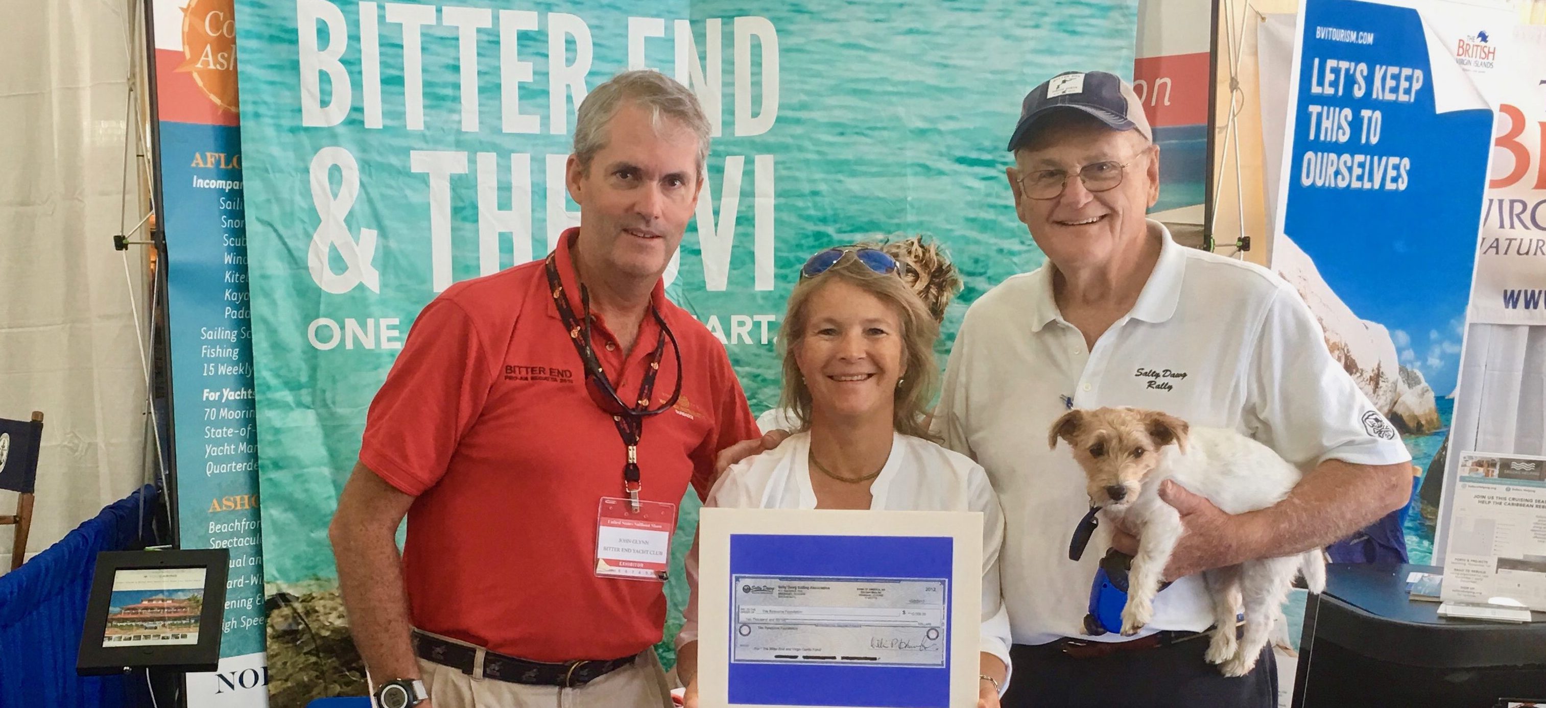 We sincerely thank all of the Dawgs and friends for their contributions to the BVI Relief Fund to date. During the Salty Dawg Rendezvous at the Annapolis Boat Show, we were thrilled to be able to present a check for $10,000 to the management of the Bitter End Yacht Club. The contribution will help the employees of the Bitter End Yacht Club and the residents of Virgin Gorda as they re-build their lives after the destruction caused by Hurricane Irma. (Pictured left to right are John Glynn, BEYC Marketing Director; Carinne Locher, BEYC Marina Director, and Bill Knowles, President of the SDSA — with Zoe!) Read more.