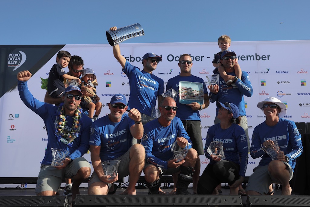 LISBON, PORTUGAL (28 October 2017) – Vestas 11th Hour Racing crossed the finish line in Lisbon at 1408 UTC ahead of their competitors by a few hours earning 8 points and are now the leaders of the Volvo Ocean Race. They led the 7-day race since the first night staying ahead of the other seven boats through the Strait of Gibraltar, around the island of Porto Santo, and north to Lisbon via a virtual waypoint added by the Race Committee mid-leg.