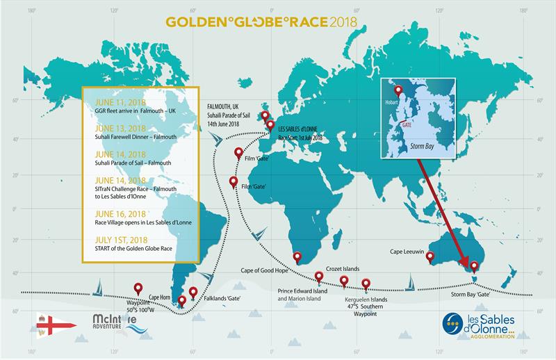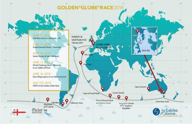 The 2018 Golden Globe Race will start from Les Sables d’Olonne on Sunday July 1, 2018. The event marks the 50th anniversary of the Sunday Times Golden Globe solo non-stop round the world Race in 1968/9 when rules then allowed competitors to start from ports in northern France or UK between June 1st and October 31st.