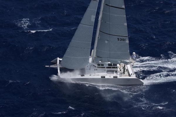 Greg Slyngstad’s American Bieker 53 multihull Fujin has capsized during the RORC Caribbean 600. All eight crew are reported to be safe. Stephen Cucchiaro’s Gunboat 60 Flow stood by until Dutch/ French authorities organised a rescue vessel. Preparations are now underway to transfer all crew to the safety of Port Saba.