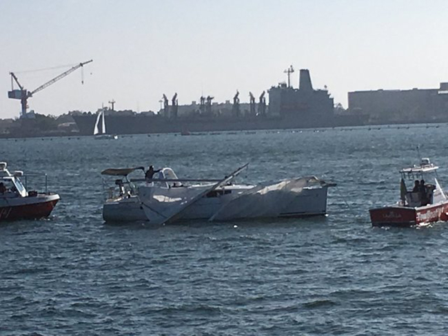 Someone on the 38-foot vessel as well as a number of witnesses called 911 to report the collision about 2:15 p.m.